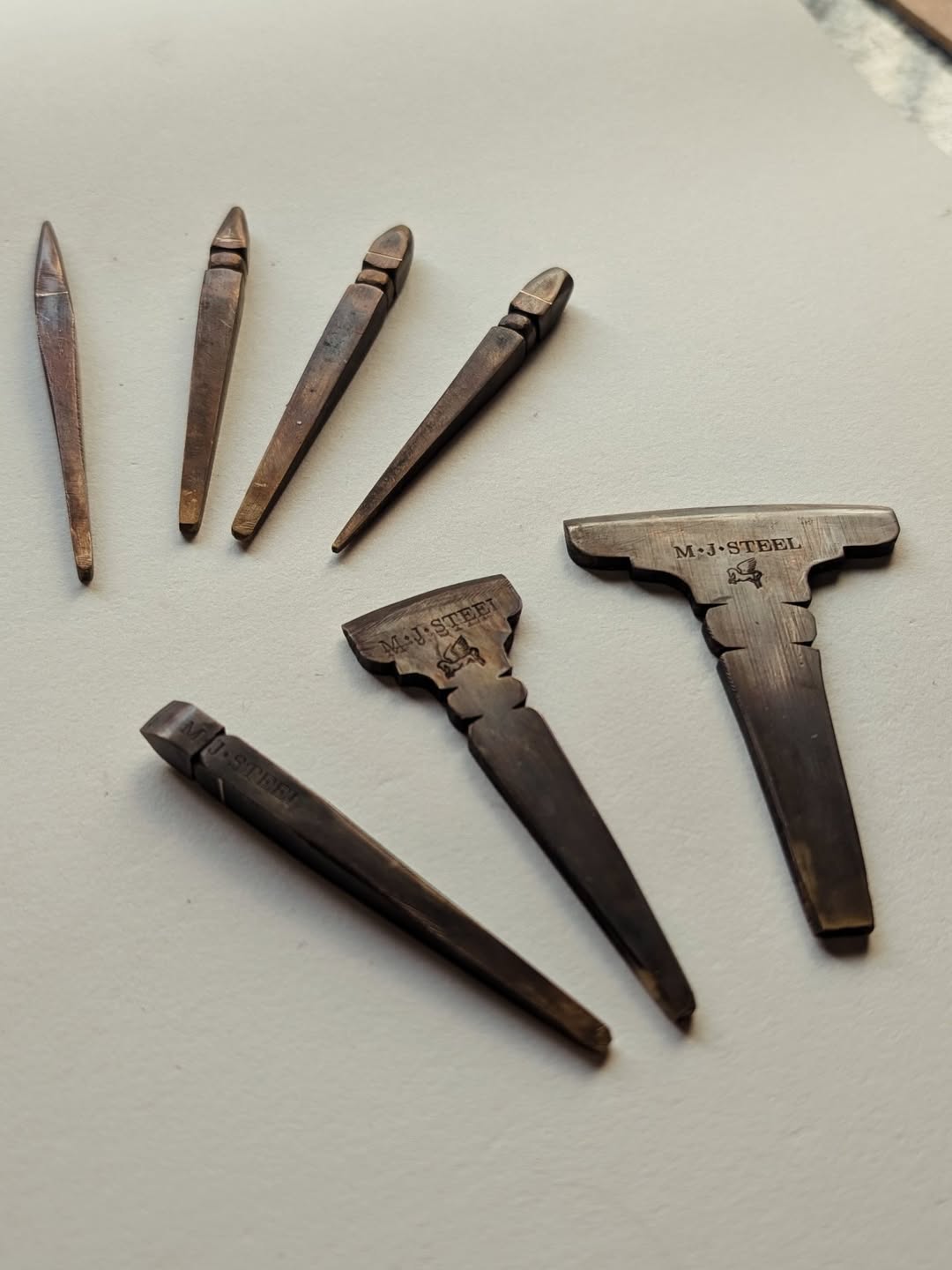 Some freshly cut tools without handles